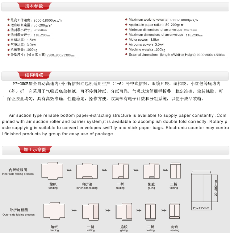 HP-250B型全自動高速內(nèi)(外)折信封紅包機(jī)