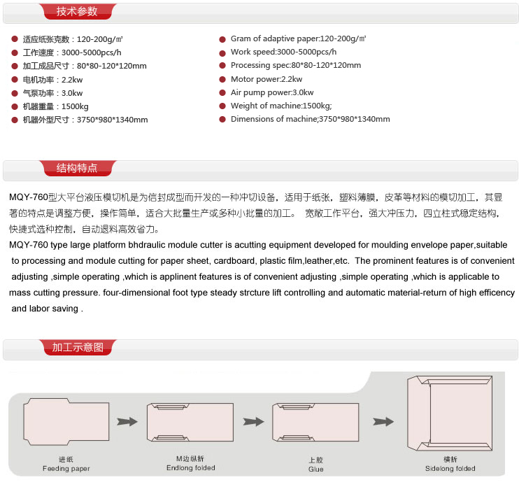 大平臺液壓模切機采用的都是優(yōu)質(zhì)的材質(zhì)進行制作,是印后包裝加工成型的一種重要設(shè)備,主要的作用就是將包裝產(chǎn)品印壓成相應(yīng)的形狀。模切機主要用于一些非金屬材料,雙面膠,不干膠,電子以及五金模具等等,通過壓印版來施加一定的壓力,這樣就能夠利用壓力來切成相應(yīng)的形狀。MQY-760型大平臺液壓模切機的工作原理就是利用鋼刀,模切刀以及鋼線等等材料,將整個印品壓切成單個圖形的產(chǎn)品就被稱之為模切,如果是利用鋼線在印品上壓出痕跡就會被稱之為壓痕。